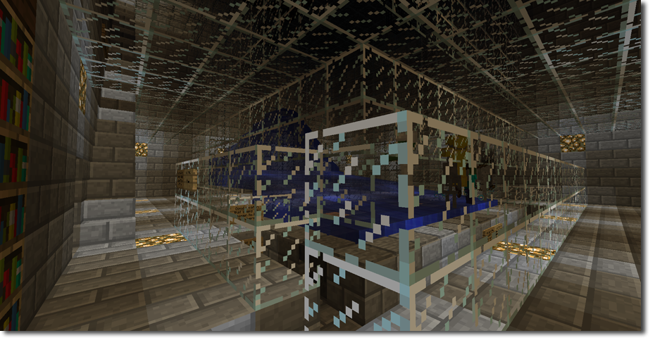 When you join the server, climb down the ladder and step on the pressure plate to receive the latest copies of the rules and command guides. Climb back up the ladder and find one of the exits to begin your journey!